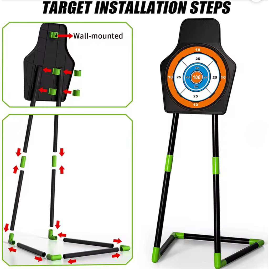 Safe and Kid-Friendly Design: Equipped with soft-tip suction-cup arrows that easily stick to smooth surfaces like windows and the included target, ensuring safe play both indoors and outdoors.