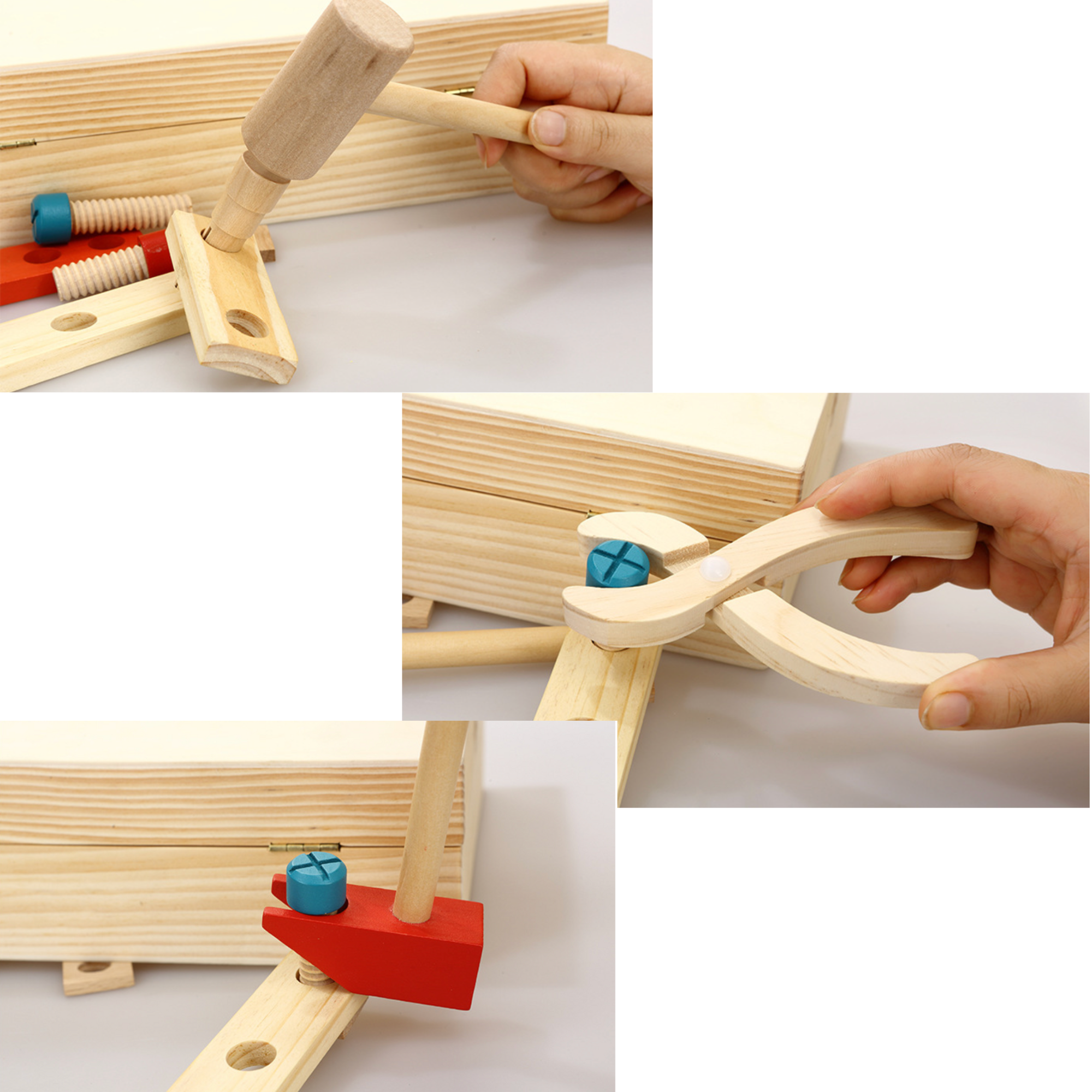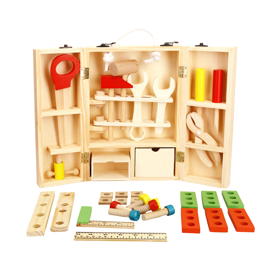 Let your little builder explore creativity and hands-on learning with this Montessori Wooden Tool Box Set — a complete pretend play construction kit that encourages imagination, coordination, and problem-solving!