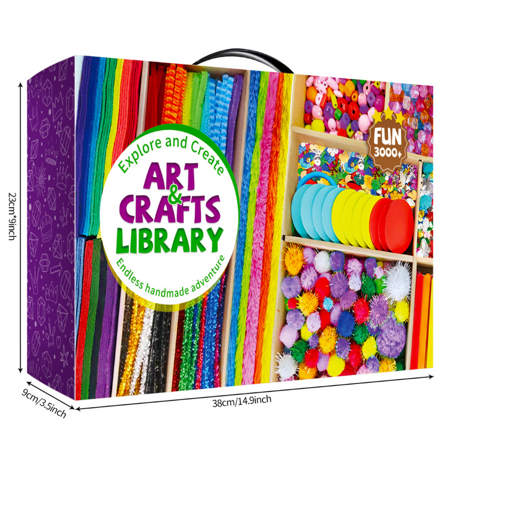 Unleash endless creativity with this all-in-one Art & Crafts Library, featuring over 3000 colorful pieces neatly organized into 14 sections and 2 easy-pull drawers. From pom-poms, sequins, beads, and feathers to glue, scissors, and pipe cleaners, every item is ready for hours of exciting, mess-free projects.